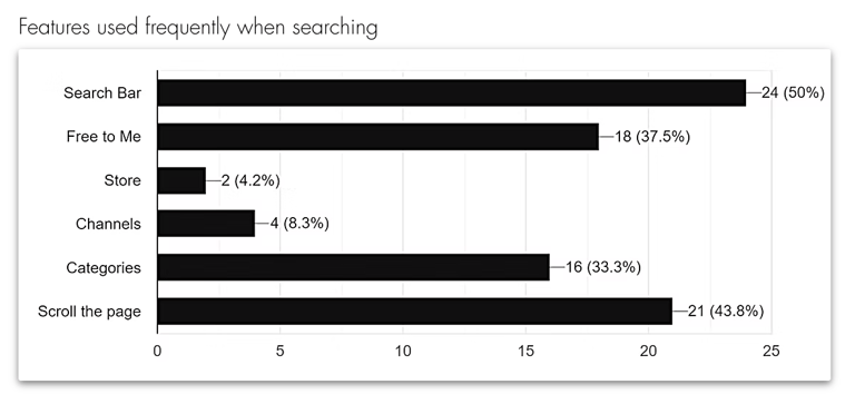 The survey was also used as an opportunity to let survey participants identify how often they used Prime Video and which elements they used when looking for something to watch. This gave an advantage, as I used this feedback to target those elements and prioritize them in our redesign.